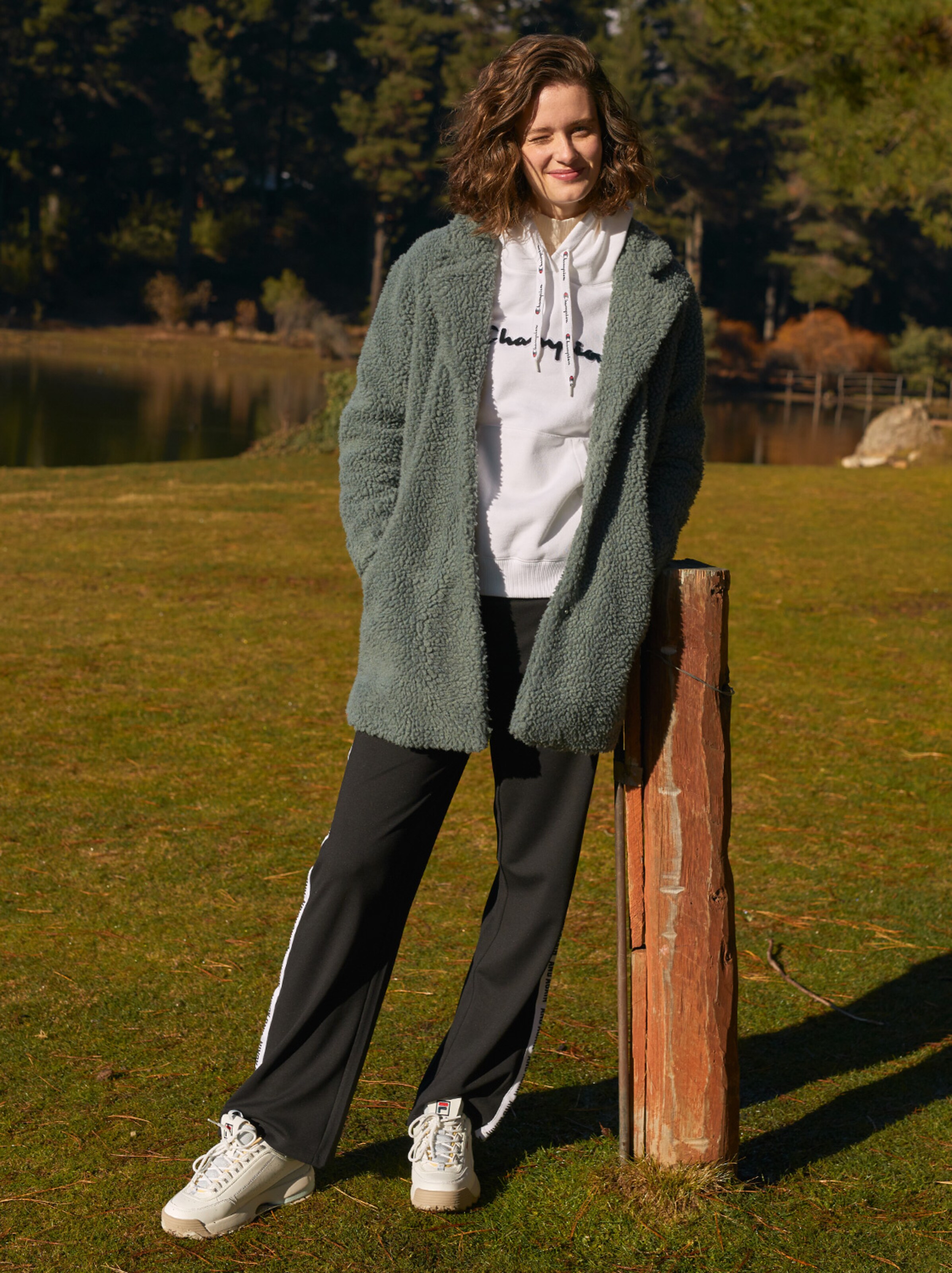 Są nie tylko cudowne, puszyste i przytulne, ale mają także inną zaletę: płaszcze Teddy są super uniwersalne. Obecnie nasze ulubione połączenie: stawiamy na swobodę i wygodę - wszystko czego potrzebujesz to szeroki sweter lub bluza, luźne spodnie i trampki, a na wierzch płaszcz Teddy! Gotowe! Codzienny wygląd na luzie, który również wygląda stylowo!